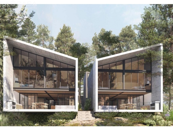 Proyecto de 2 casas, con exclusivos acabados cada una, de superficie de 1106m2, área de jardín 500 m2 y 320.90 m2 de construcción; cuenta con caseta de vigilancia de 40 m2, 2 lugares de estacionamiento descubierto, frente al conjunto el bosque e increíbles vistas.